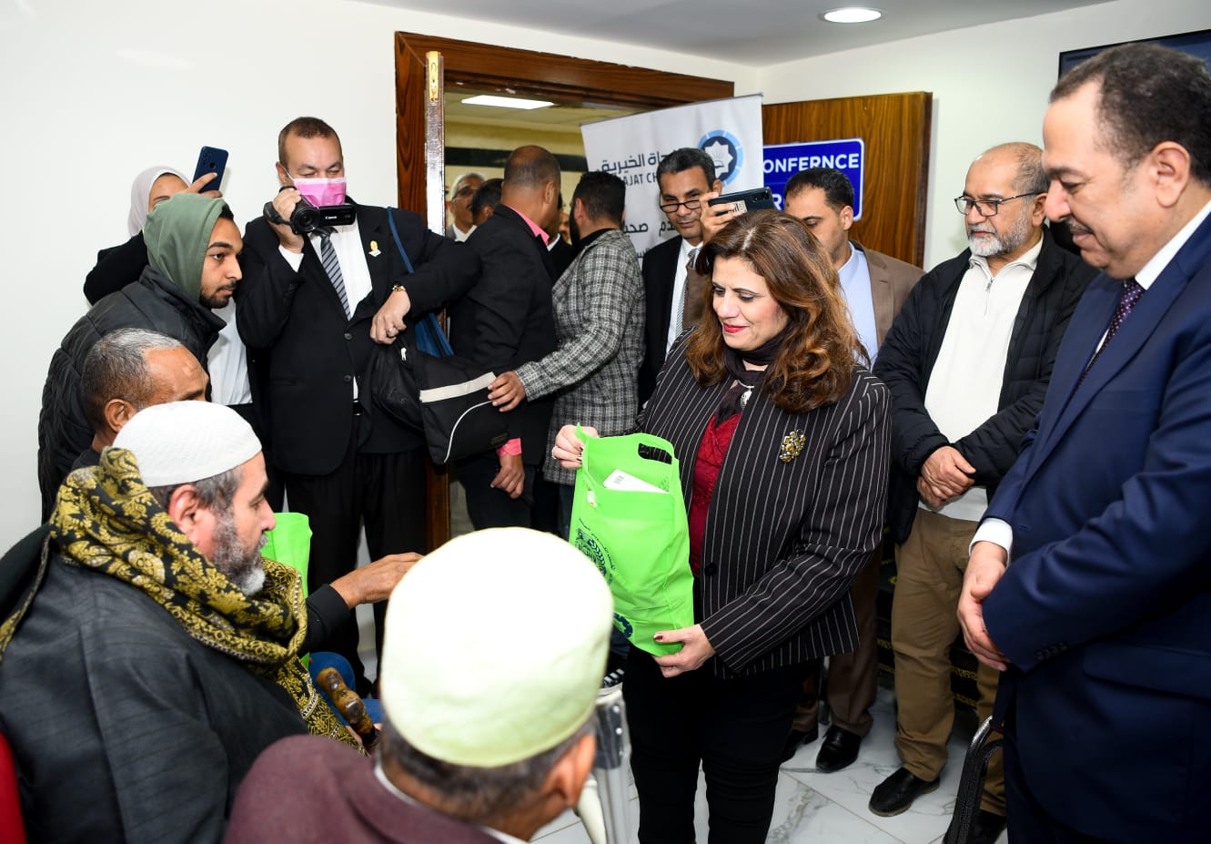 رافق وزيرة الهجرة في زيارتها لجامعة أسوان، السفير غانم الصقر سفير دولة الكويت بالقاهرة والمندوب الدائم لدولة الكويت لدى جامعة الدول العربية، وسارة المطيري مدير المكتب الكويتي للمشروعات الخيرية، والدكتور محمد إسماعيل الأنصاري مدير عام جمعية النجاة الخيرية بدولة الكويت. وكان في استقبال الوزيرة ورافقتها الدكتورة غادة أبو زيد نائب محافظ أسوان نائبة عن اللواء أشرف عطية محافظ أسوان، والدكتور أيمن عثمان رئيس جامعة أسوان، والدكتور أشرف معبد المدير التنفيذي لمستشفيات جامعة أسوان.