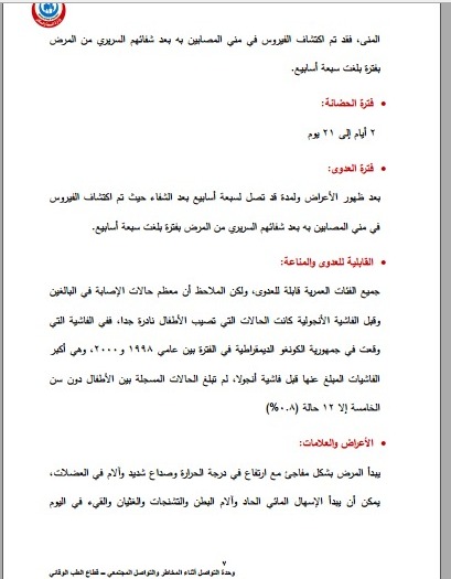 وأضاف الطب الوقائي، أن فترة حضانة الفيروس تتراوح ما بين 2 إلى 21 يوما، موضحا أن جميع الفئات العمرية قابلة للعدوى، ولكن الملاحظ أن معظم حالات الإصابة في البالغين وإصابات الأطفال نادرة جدا.