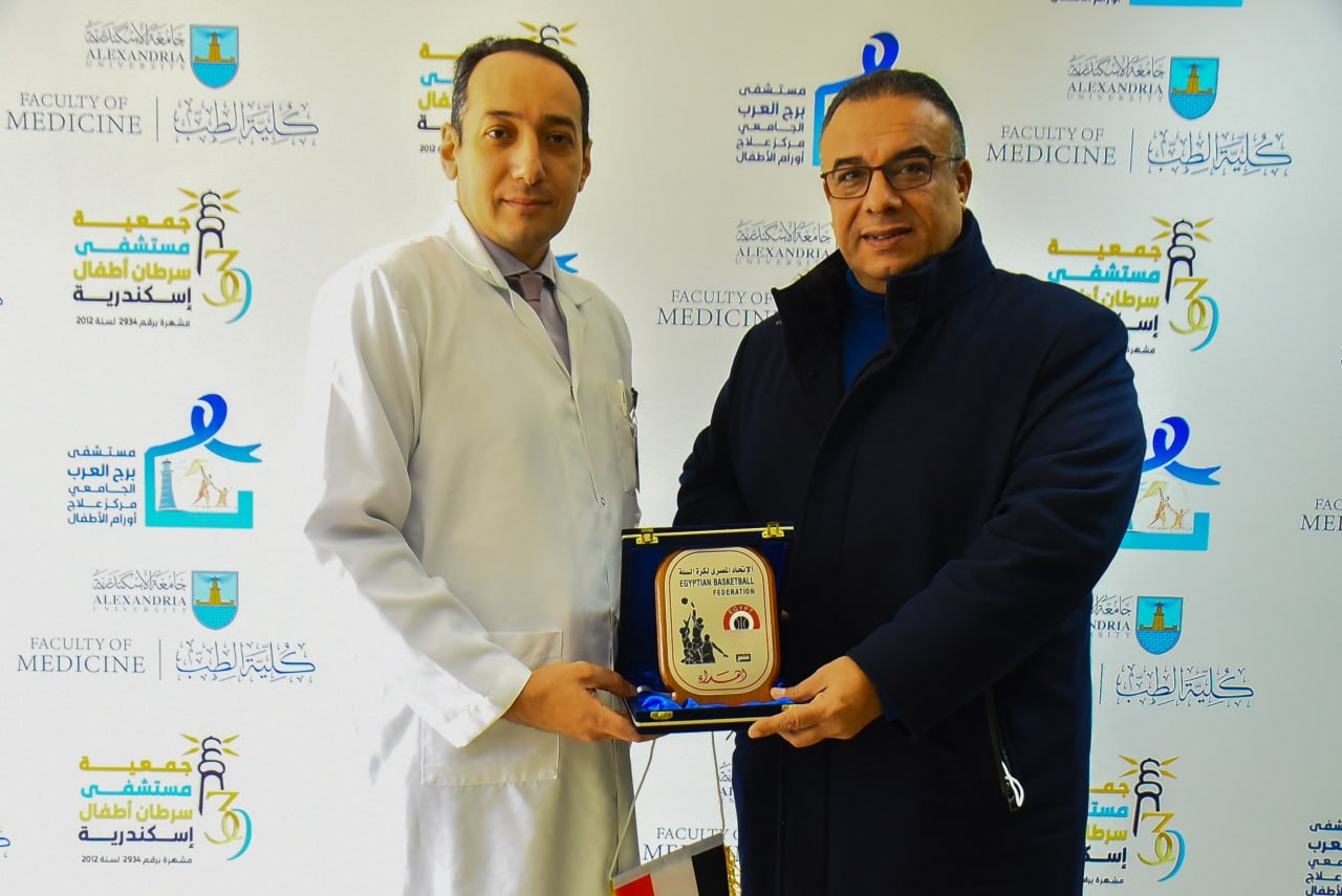 وتواجد لاعبو منتخب مصر والجهاز الفني برفقة عمرو مصيلحي نائب رئيس مجلس إدارة اتحاد كرة السلة صباح اليوم الخميس في جمعية مستشفى سرطان الأطفال بالإسكندرية.