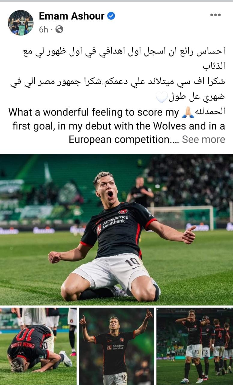 وقال إمام عاشور عبر حسابه الشخصي على موقع التواصل الاجتماعي فيس بوك: إحساس رائع أن أسجل أول أهدافي في أول ظهور لي مع الذئاب، شكرا إف سي ميتلاند على دعمكم، شكرا جمهور مصر اللي في ضهري على طول، الحمدلله.