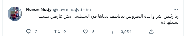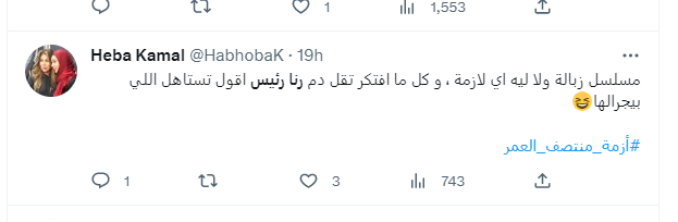 واجهت الفنانة رنا رئيس هجوم كبير على موقع التغريدات تويتر، بسبب مشاركتها في مسلسل أزمة منتصف العمر مع الفنان كريم فهمي وريهام عبد الغفور، وتحديدًا بعد عرض الحلقة 12 أمس، التي اكتشفت بها خيانة والدتها مع زوجها وأن السيدة التي كانت تعتقد أنها والدتها لم تكن والدتها الحقيقية، مما أصابها بحالة هيستيرية.