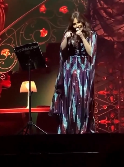 وأطلت إليسا بفستان متداخل الألوان ما بين البنفسجي والفضي والفوشيا، وقال برنامج et بالعربي، إن الرقابة في الكويت، ألزمت إليسا بتعديل الفستان من منقطة الصدر، ورغم المحاولة بتلافي تلك المشكلة، لكنهم رأوا أن الحل يكمن في تغطية منطقة الصدر بشعرها، وكانت إليسا تحاول الانتباه لذلك الأمر بين الحين والآخر أثناء الغناء.