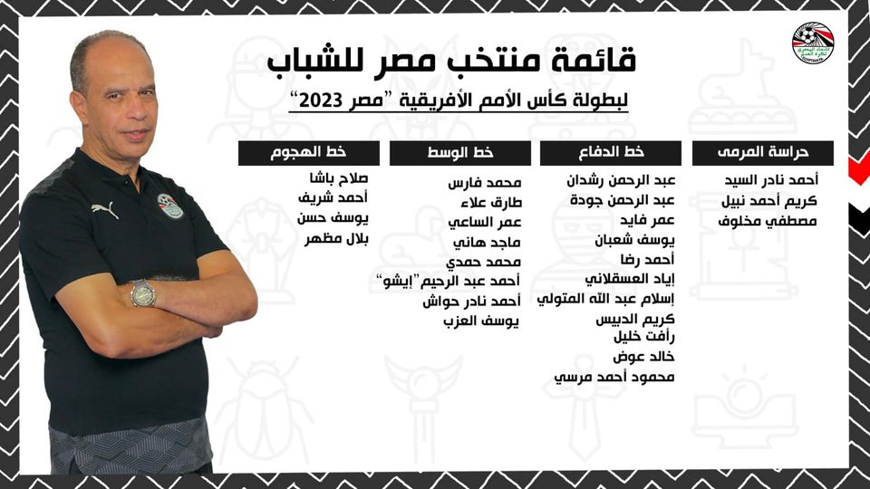 ووقع منتخب مصر للشباب، في المجموعة الأولى، من بطولة كأس الأمم الأفريقية 2023، إلى جانب منتخبات: موزمبيق، نيجيريا، السنغال.