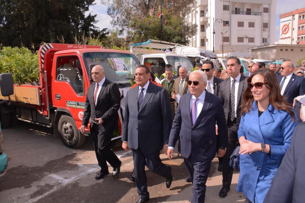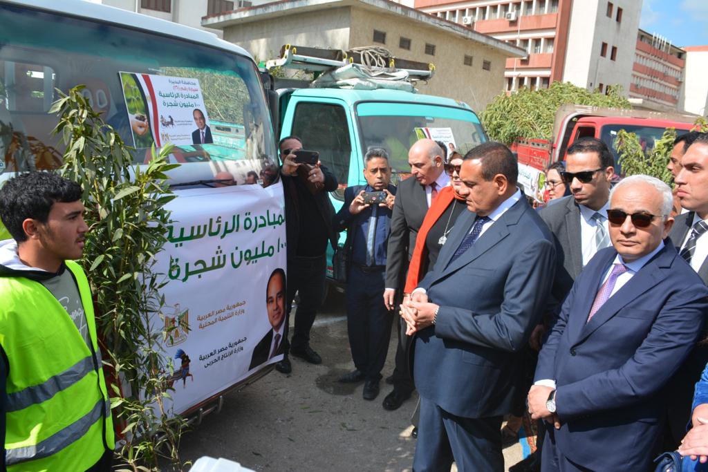 وزيرا التنمية المحلية والتعليم يشهدان اصطفاف 45 سيارة تضم 130 ألف شجرة بالبحيرة