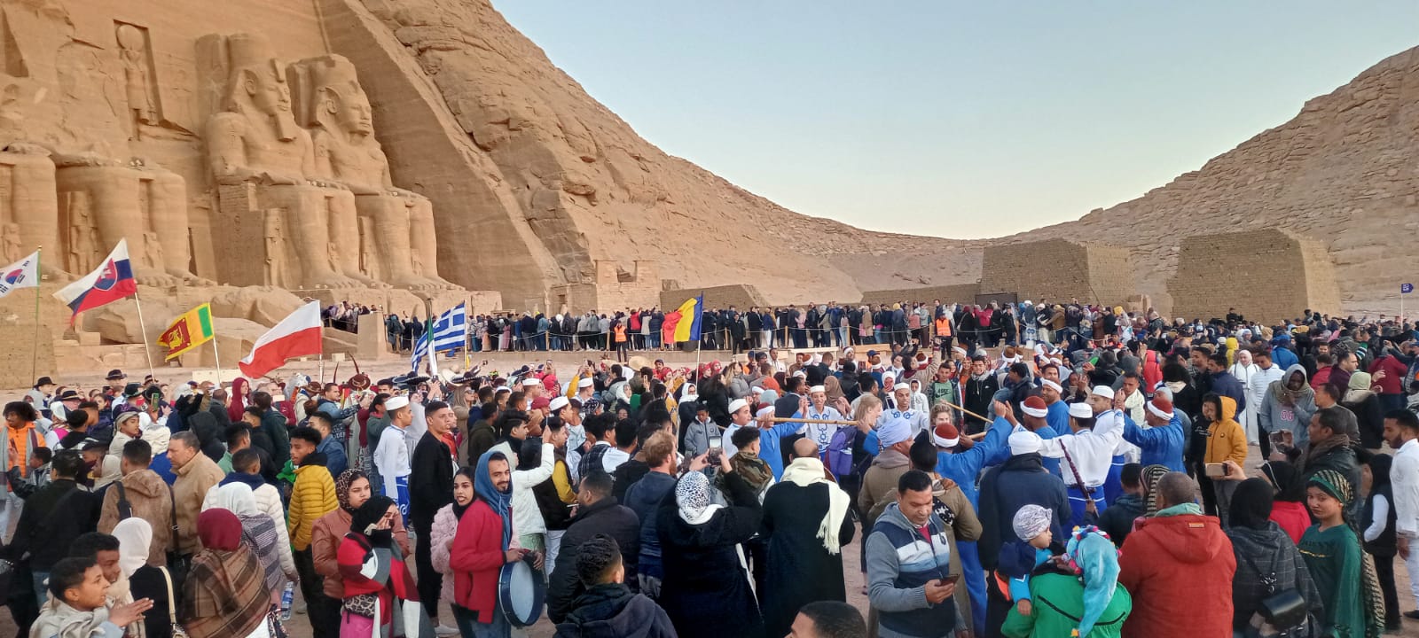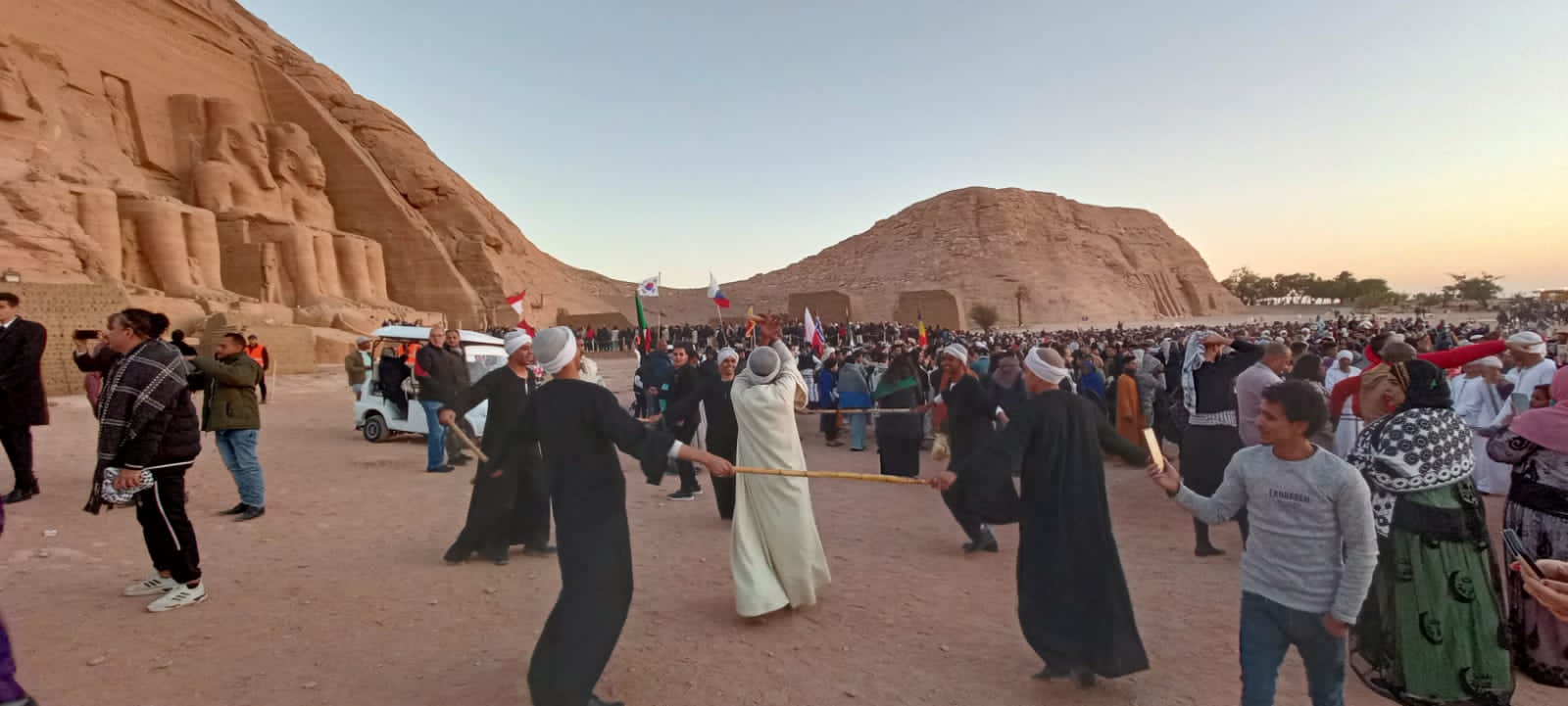 عروض فلكلورية لفرق مهرجان أسوان في تعامد الشمس على قدس الأقداس