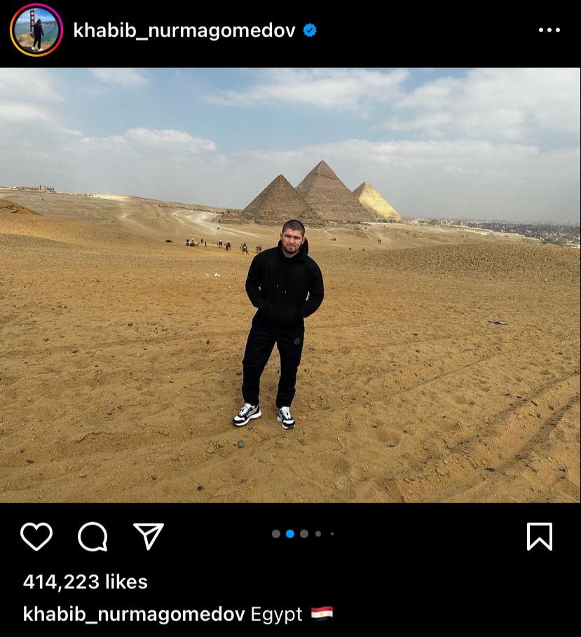 نشر الملاكم الأسطوري نورمحمدوف بطل الملاكمة الروسي، صورًا له عبر موقع إنستجرام خلال زيارته لمصر، وتضمنت الصور لقطات وسط العديد من المعالم السياحية التاريخية.