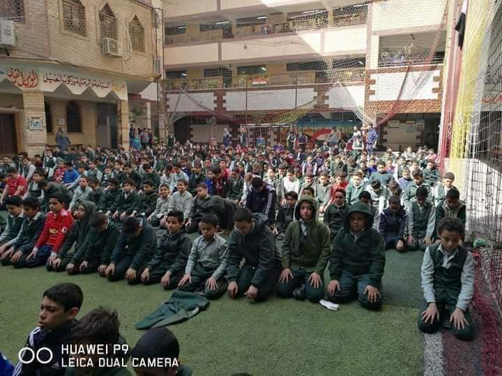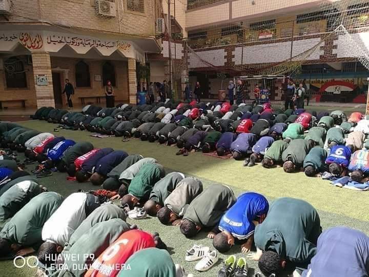 تداول مستخدمو موقع التواصل الاجتماعي فيسبوك، عبر الصفحات العامة والمجموعات، صورًا لطلاب إحدى المدارس الابتدائية بمحافظة أسيوط، أثناء صلاة الظهر في جماعة بفناء المدرسة.