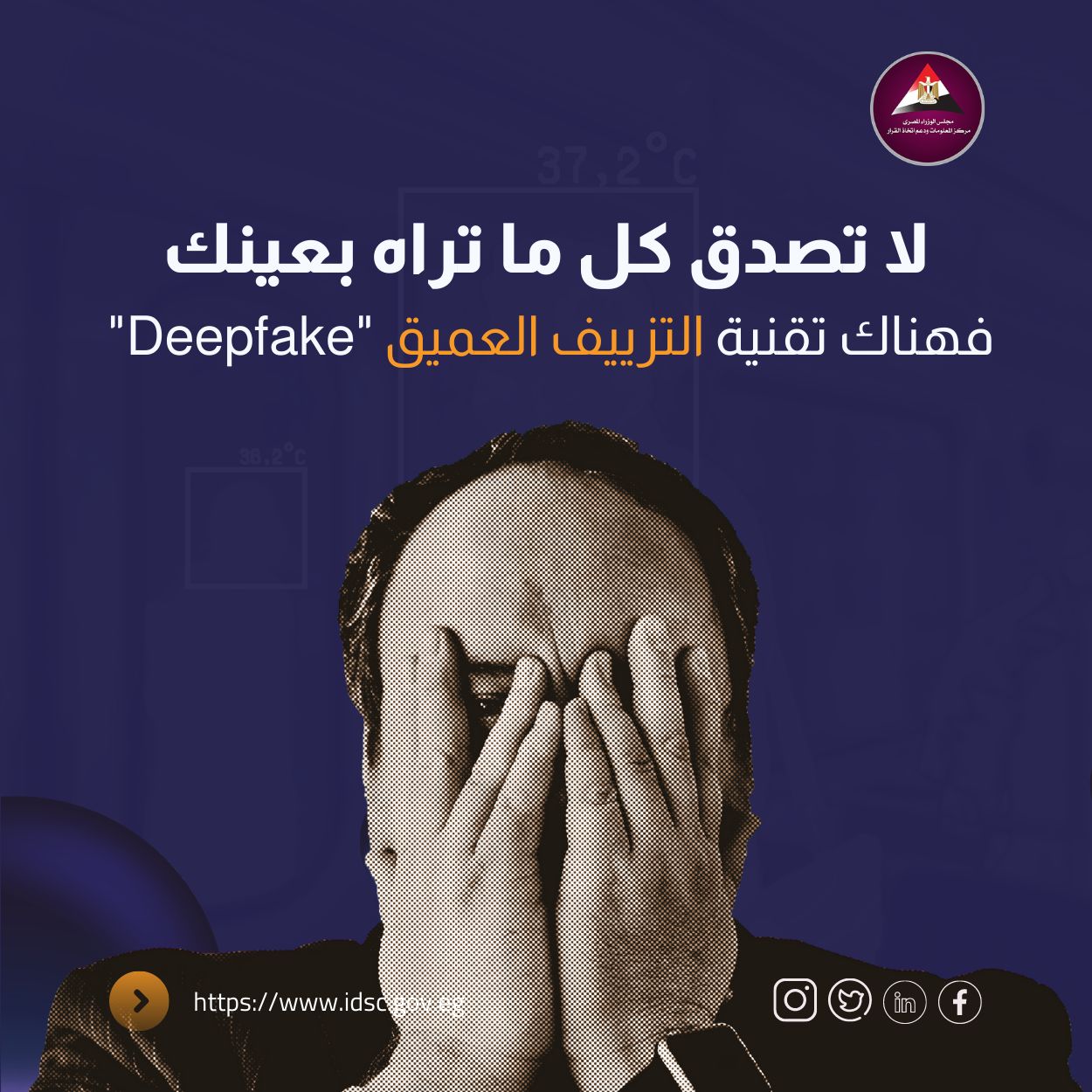 وأوصى المركز عبر صفحته على فيس بوك، بعدم تصديق كل ما تراه العين في ظل وجود تقنية التزييف العميق والتي تقومُ على صنعِ فيديوهات مزيّفة عبر برامج الحاسوب من خِلال استبدال ملامح الشخص المتحدث في الفيديو أو استبدال الصوت بصوت شخص آخر، من أجلِ إنتاج مقطع فيديو جديد قد يبدو للوهلة الأولى أنه حقيقي لكنّه في واقع الأمر مُزيّف.