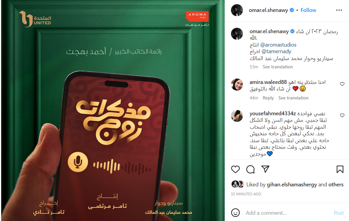 وكان الفنان عمر الشناوي، نشر البوستر التشويقي لمسلسل مذكرات زوج بطولة طارق لطفي، المقرر طرحه في السباق الرمضاني المقبل 2023، وذلك من خلال منشور عبر حسابه الشخصي على انستجرام