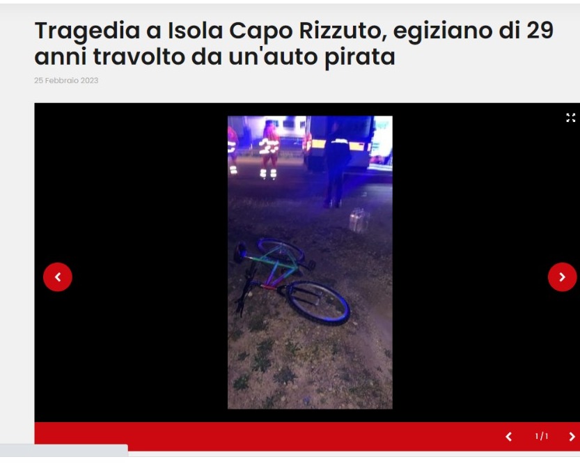 نشرت إحدى الصحف الإيطالية خبر وفاة شاب مصري يبلغ من العمر 29 عاما في صدام مروع ناتج عن سيارة مسرعة، حيث كان يسير أمام مخيم للاجئين المقيم به.