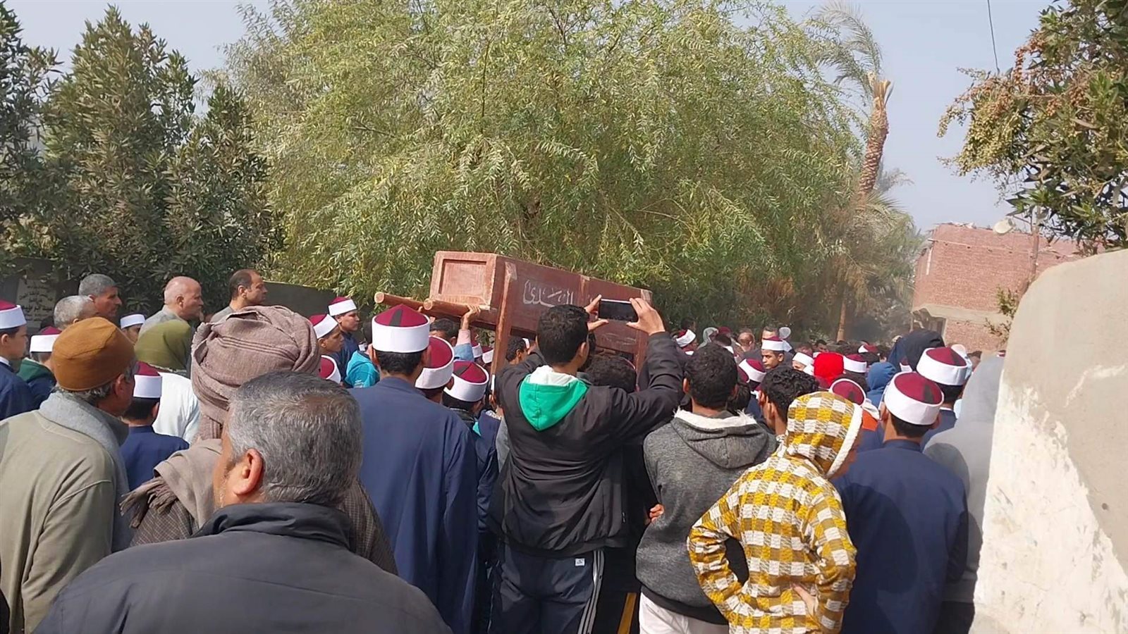 ممر شرفي بطول 500 متر على جانبي الطريق لجنازة معلم بالأزهر ببني سويف