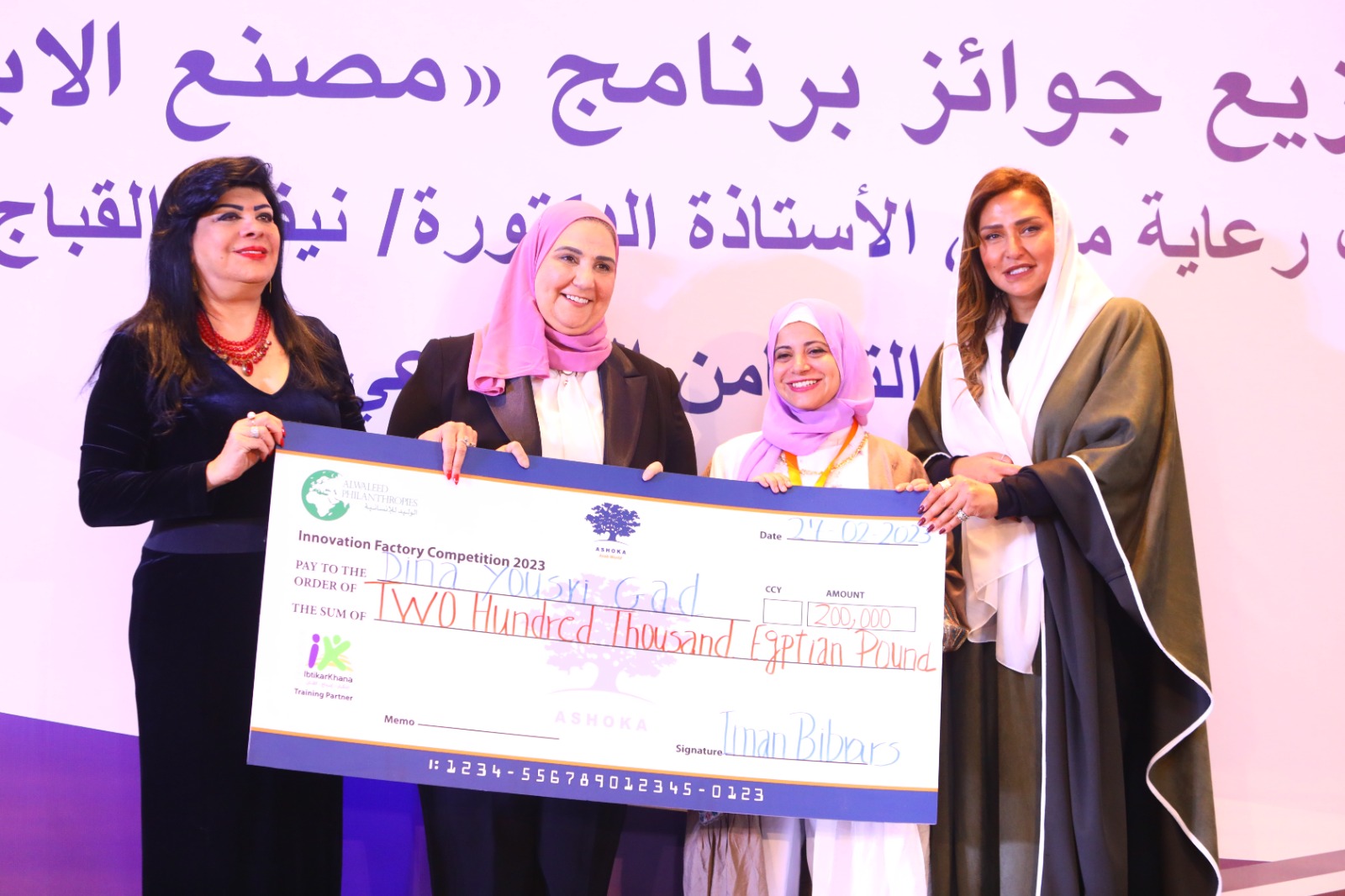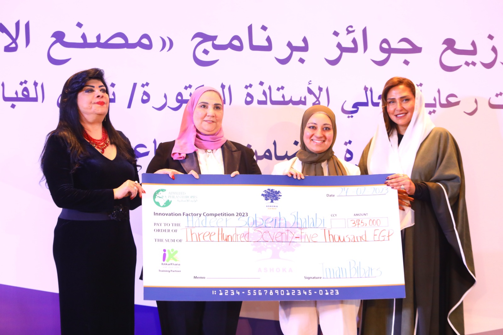 شهدت نيفين القباج، وزيرة التضامن الاجتماعي، حفل توزيع الجوائز على خريجي برنامج مصنع الابتكار، في إطار الشراكة بين منظمة أشوكا الوطن العربي ومؤسسة الوليد للإنسانية، وذلك بحضور الأميرة لمياء بنت ماجد آل سعود الأمين العام لمؤسسة الوليد للإنسانية، والمهندسة نيفين عثمان أمين عام المجلس القومي للطفولة والأمومة، ولميس نجم مستشار محافظ البنك المركزي للمسؤولية المجتمعية، والدكتورة إيمان بيبرس المديرة الإقليمية لمنظمة أشوكا العالم العربي ونائبة رئيس مجلس إدارة منظمة أشوكا العالمية.
