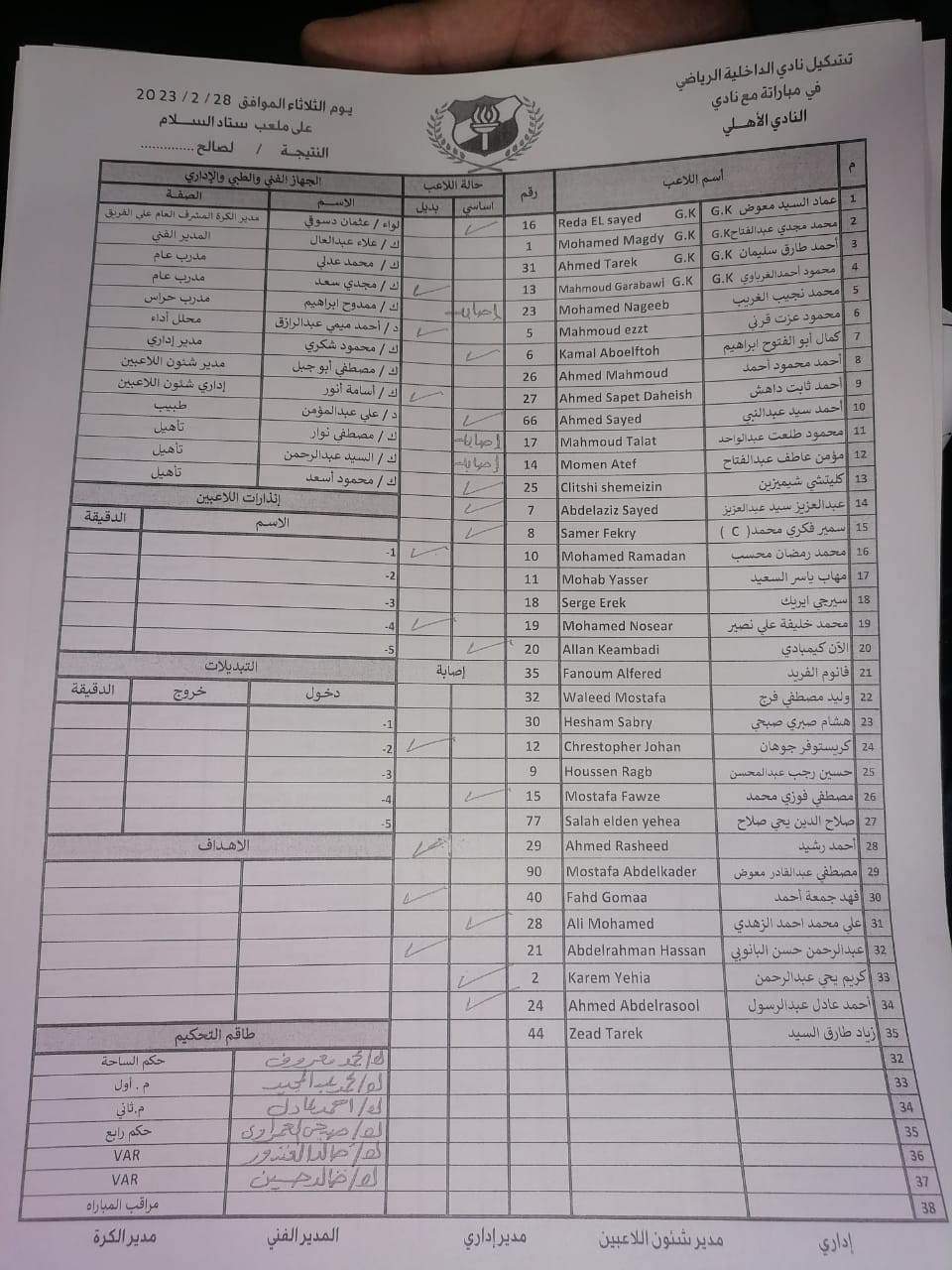 الداخلية يعلن تشكيل فريقه لمواجهة الأهلي بالدوري الممتاز