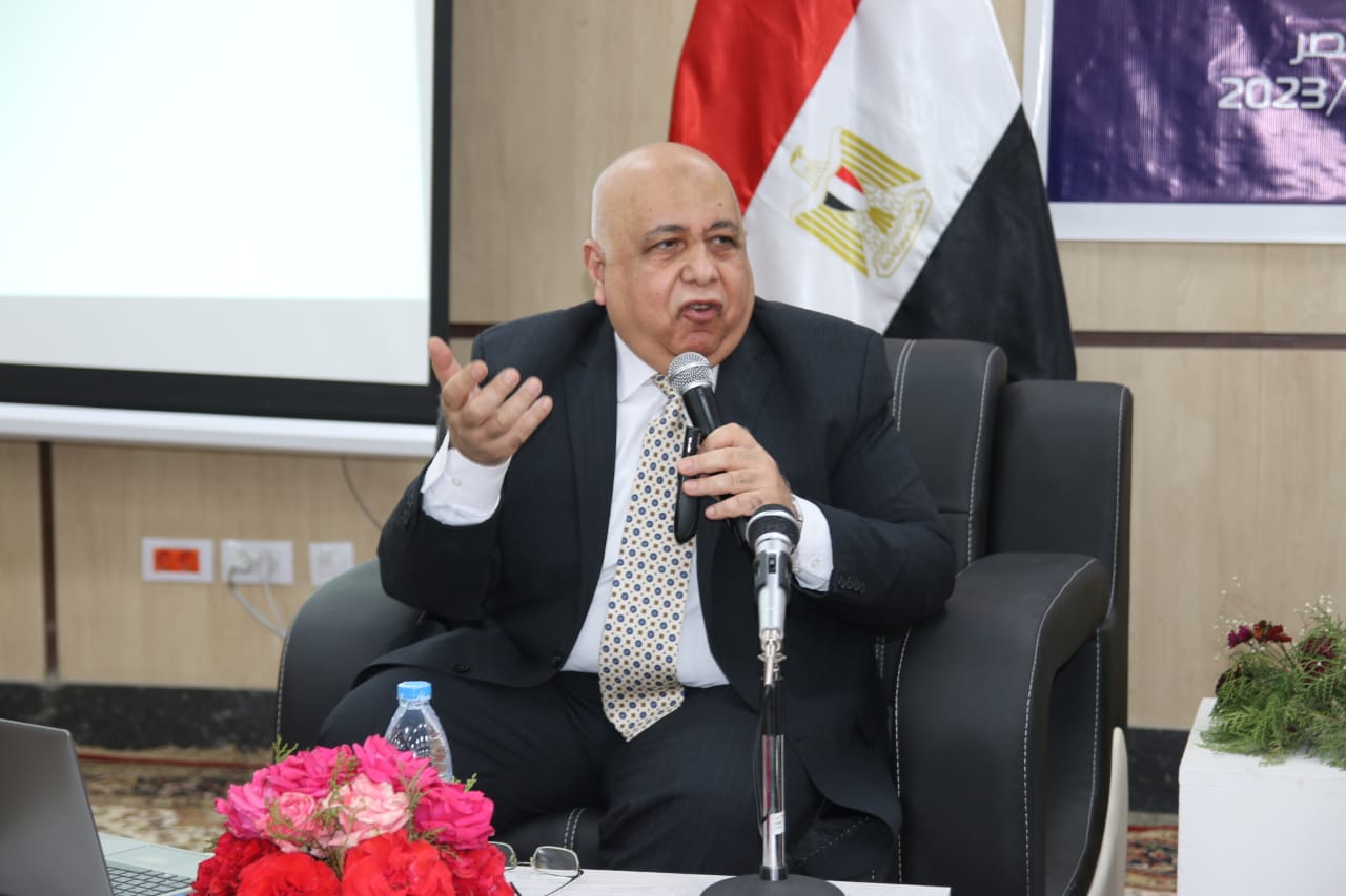 ورحب الأستاذ الدكتور حمدي محمد حسين، رئيس جامعة الأقصر، بضيوف الجامعة على رأسهم اللواء طيار دكتور هشام الحلبي، المستشار بأكاديمية ناصر العسكرية العليا.
