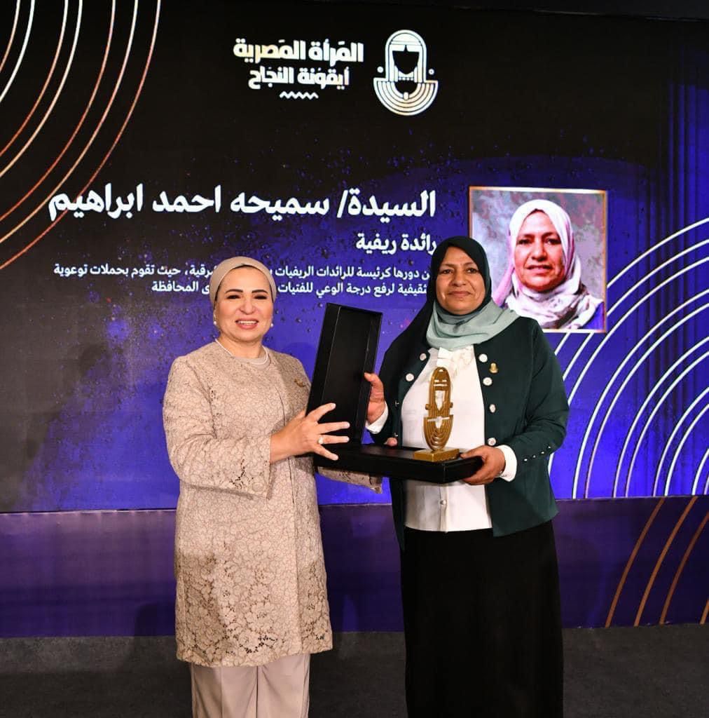 تحت شعار المرأة المصرية أيقونة النجاح، احتفلت السيدة انتصار السيسي باليوم العالمي للمرأة بحضور عدد من السيدات المصريات الملهمات، وكرمتهن وقدمت لهن الدروع الشرفية، وكانت من بين المكرمات السيدة سميحة التي كرمت عن دورها كرئيسة للرائدات الريفيات بمحافظة الشرقية.