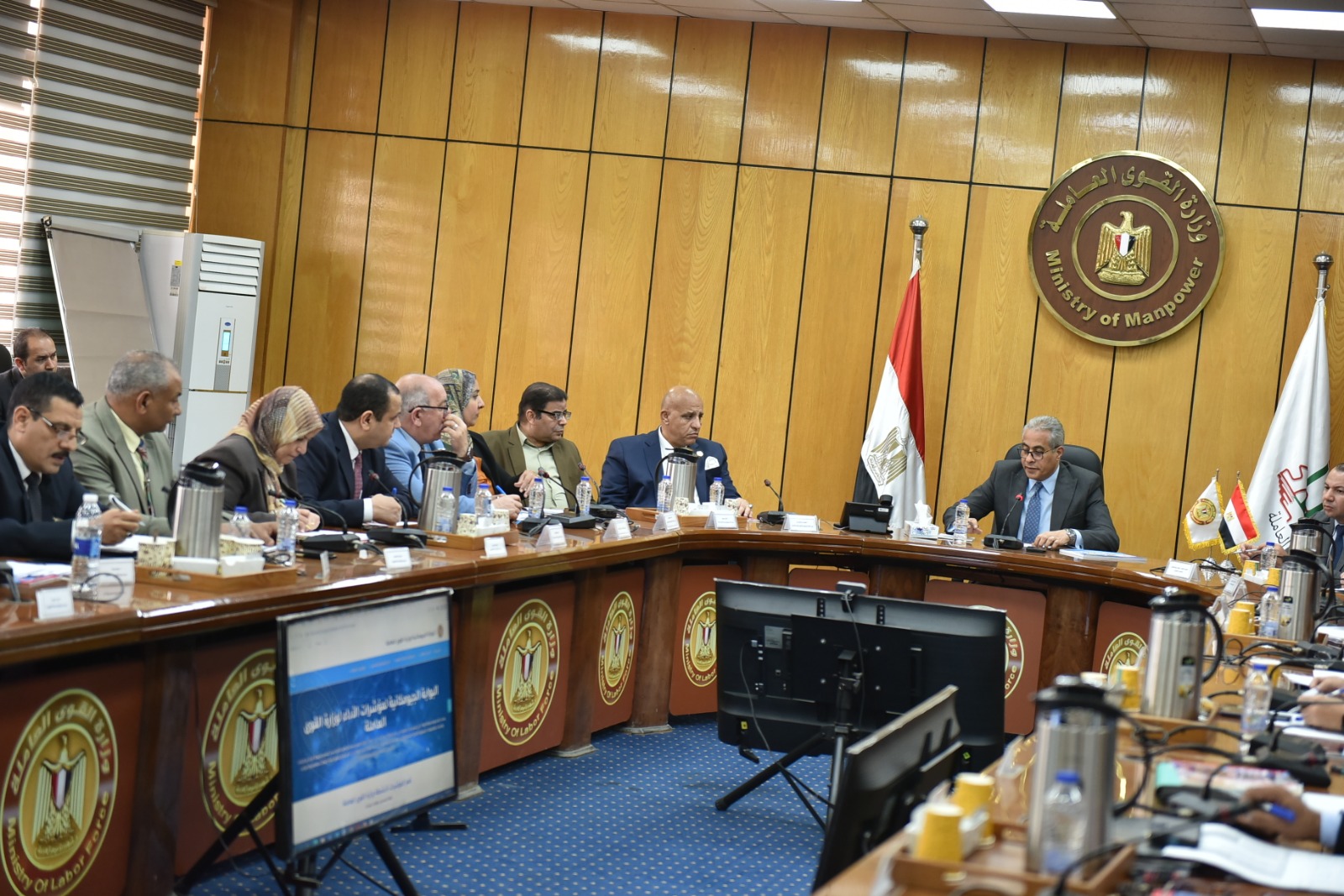 وعن أخر المستجدات بشأن البوابة الجيومكانية، شاهد الوزير مع مديري المديريات عرضًا قدمه مسؤولو البوابة الجيومكانية المعلوماتية لمؤشرات أداء وزارة القوى العاملة، لعرض أخر التطورات، تمهيدًا لإطلاق البوابة خلال أيام، ووجه الوزير فريق عمل البوابة، التنسيق المستمر مع مديري مديريات القوى العاملة 27 مديرية، للتنسيق في عملية إدخال البيانات على البوابة، وتوفير المعلومات الكافية لضخها بشكل مُستحدث ومستمر على تلك البوابة، موضحًا أن إطلاق المرحلة الأولى من البوابة يُعتبر نقلة نوعية في الخطة الإصلاحية والمعلوماتية بالوزارة، وستكون فرصة لتوفير البيانات أينما طُلبت لمتخذي القرار،بهدف تقديم خدمة أفضل للمواطن.