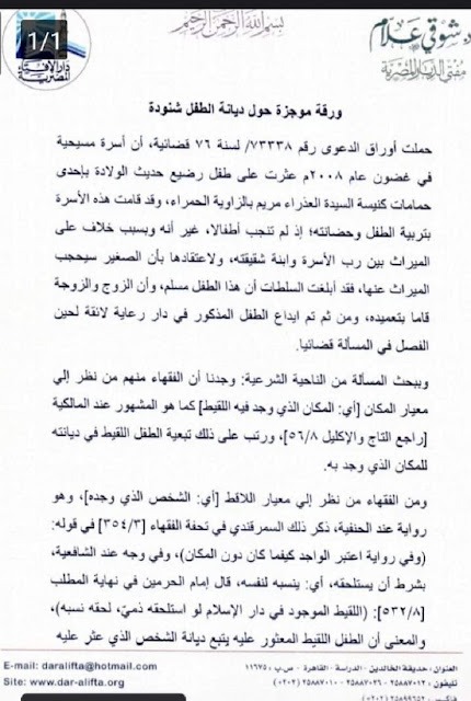 حقيقة فتوى دار الإفتاء حول رد الطفل شنودة إلى أسرته