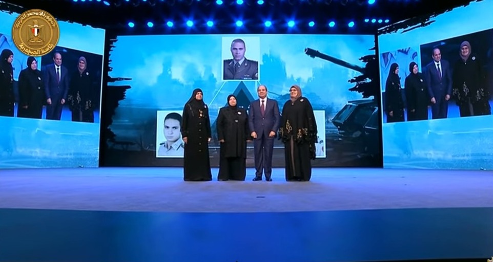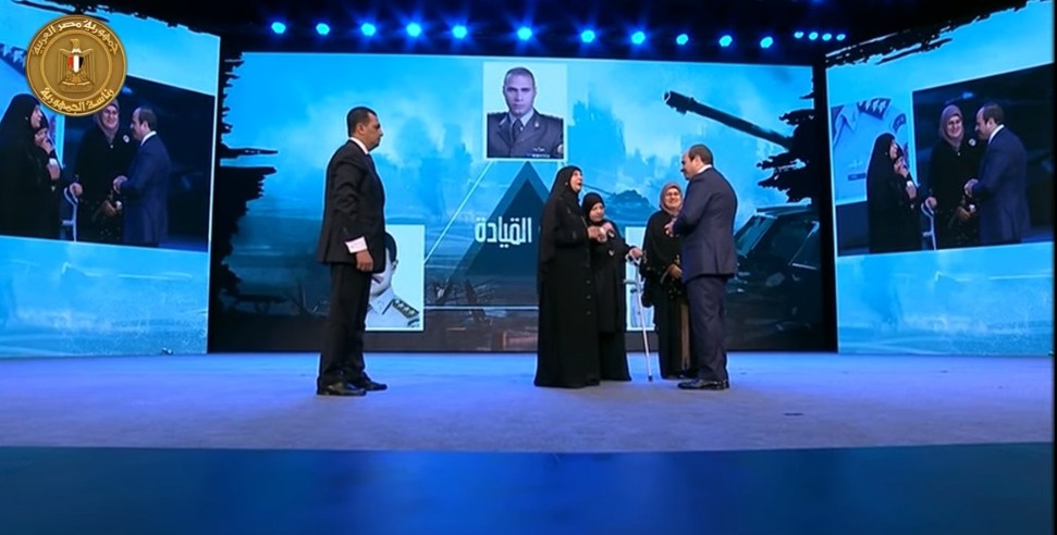 وقال الرئيس السيسي: النهاردة بفضل الله سبحانه وتعالى، التمن ده اللي دفعوا أبنائنا على مدى 8 سنيين، الحمد لله، ليكم وان شاء الله مصر بخير دايمًا، أحنا متشرفين بيكمم وبكلامكم، وتابع: مش بس الجيش اللي فاكر أولادكم لأ ده كل المصريين، مش هننسى كل شهيد وكل مصاب قدم حتة من جسمه عشان تبقى في آمان وسلام.