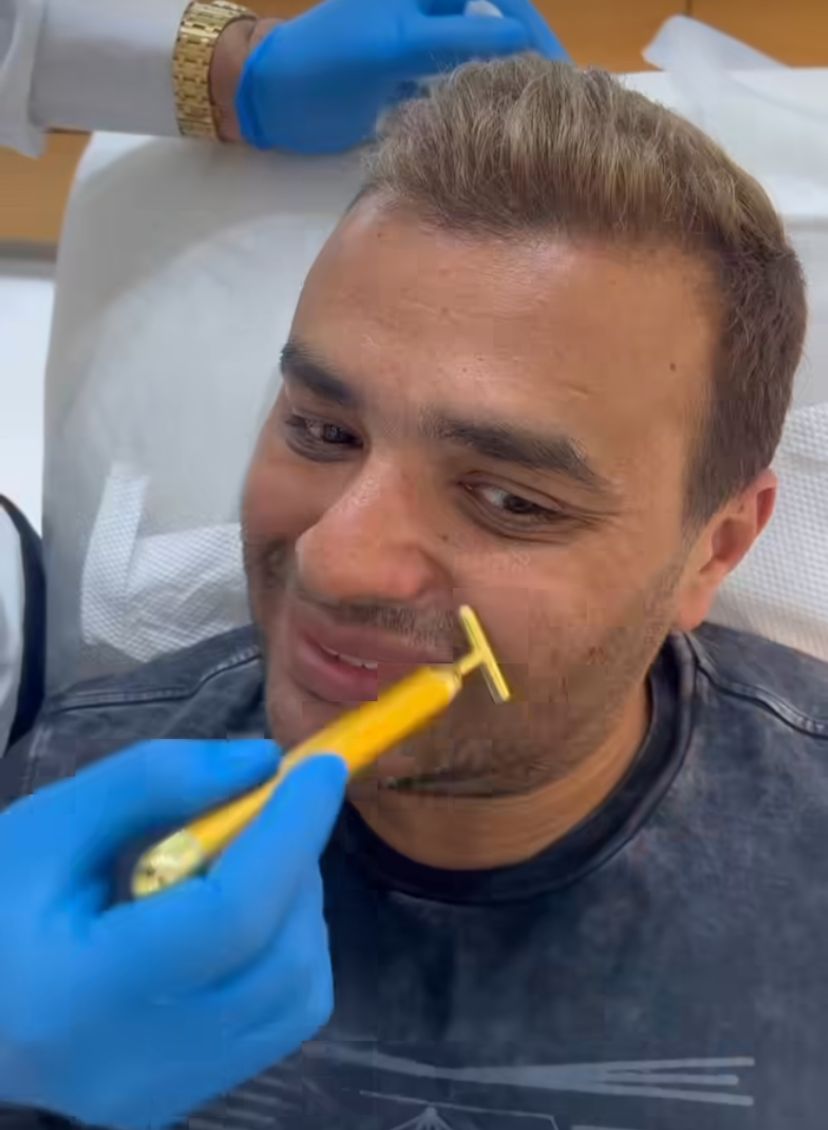 ونشر الطبيب، مقطع فيديو أثناء إجراء عملية التجميل في وجه رامي صبري، حيث ظهر وهو يخضع لبعض حقن البوتكس في الفك السفلي من الوجه.