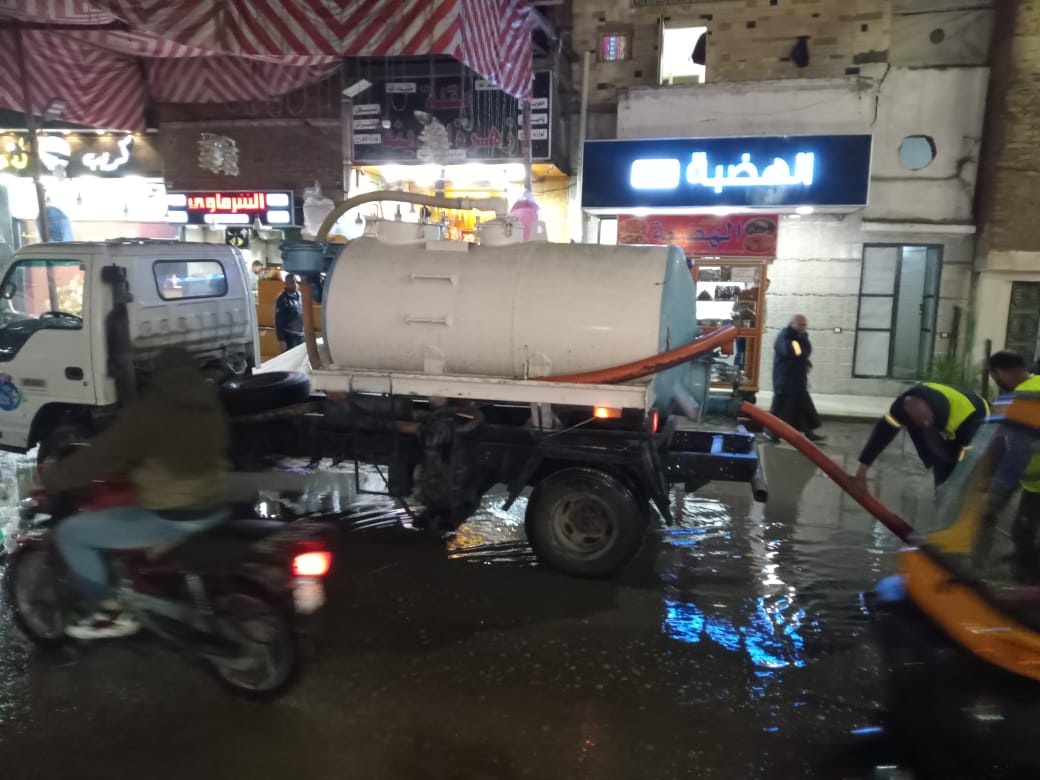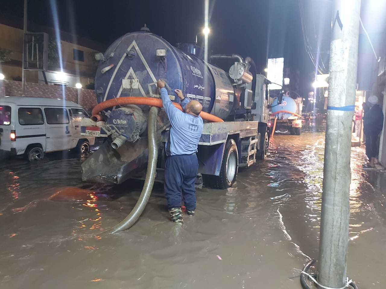 الدفع بمعدات شركة مياه الشرب والصرف الصحي بالقليوبية لرفع مياه الأمطار