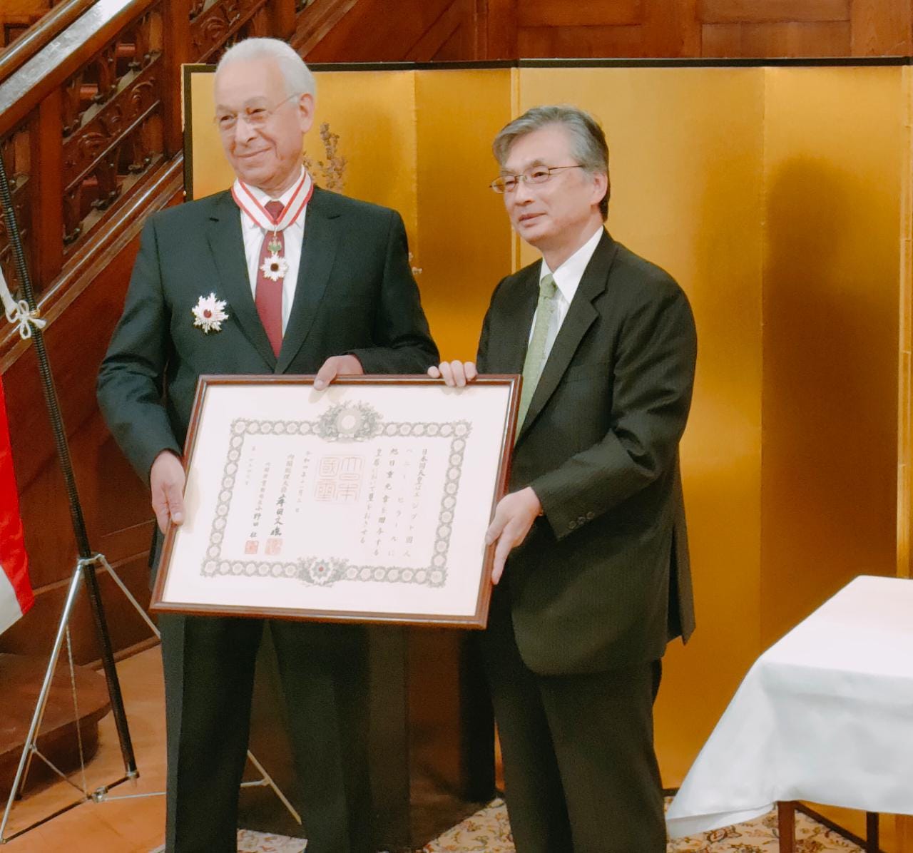 قدم سفير اليابان بالقاهرة أوكا هيروشي، وسام إمبراطور اليابان، للدكتور هاني هلال وزير التعليم الأسبق، خلال احتفالية شهدت تكريمه اليوم.