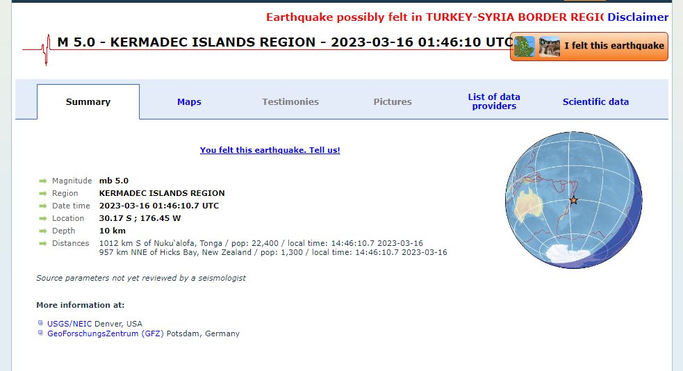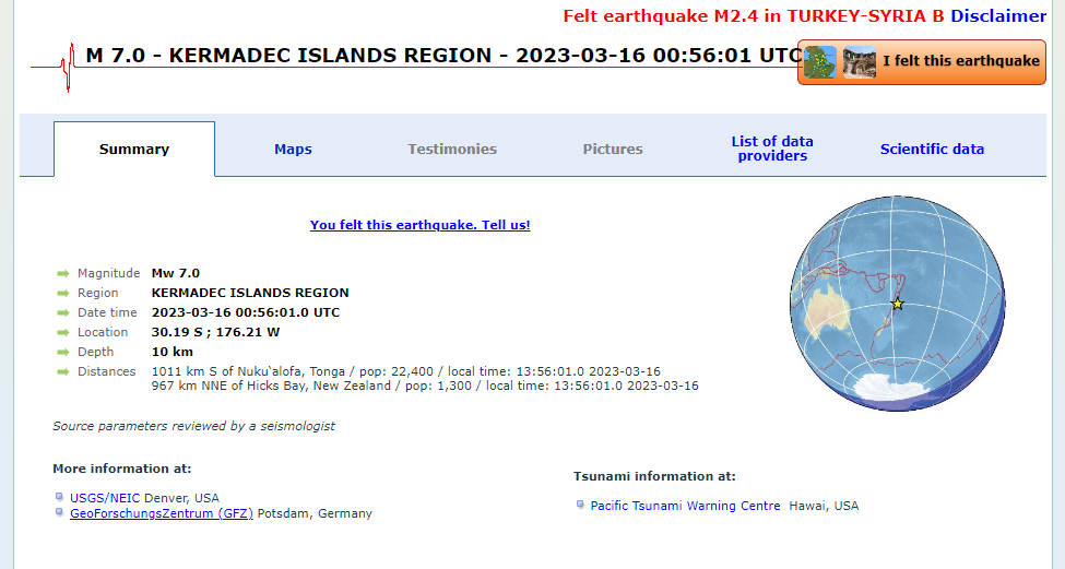 قالت هيئة المسح الجيولوجي الأمريكية إن زلزالا بقوة 7.1 درجة على مقياس ريختر ضرب جزر كيرماديك النيوزيلندية.