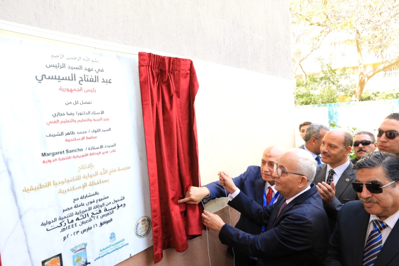 جاء ذلك في حضور القبطان علاء فتح الله رئيس مجلس إدارة شركة فتح الله، والدكتورة جاكلين عازر نائب محافظ الإسكندرية، نيابة عن اللواء محمد الشريف محافظ الإسكندرية، واللواء حازم بدر الدين نائب قائد المنطقة الشمالية، ومارجريت سانشو نائب مدير الوكالة الأمريكية للتنمية الدولية USAID، وجريجوري نيبلت، نائب مدير شركة إم تي سي إنترناشيونال، والدكتور أحمد المحمدي مساعد الوزير لشئون المدرسات والدكتور عمرو بصيلة، مدير وحدة تشغيل وإدارة مدارس التكنولوجيا التطبيقية بالوزارة، والدكتورة شيرين حمدي مستشار الوزير للتطوير الإداري والمشرف على الإدارة المركزية لمكتب الوزير، والدكتور عربي أبوزيد مدير مديرية التربية والتعليم في الإسكندرية، ومحمد فوزي نائب مدير مشروع قوى عاملة مصر، والدكتور عمرو سليمان استشاري أول المدارس الدولية للتكنولوجيا التطبيقية ـ مشروع قوى عاملة مصر، وعدد من ممثلي القطاع الاقتصادى بالوكالة الأمريكية، والشركاء من قطاعي الأعمال العام والخاص.