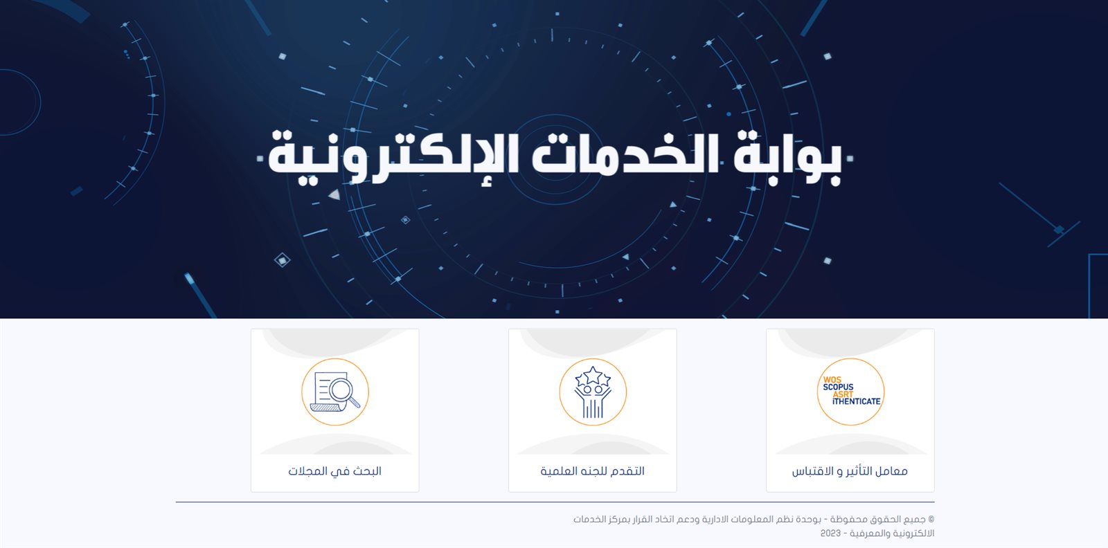 أعلن المجلس الأعلى للجامعات الحكومية، إطلاق المرحلة الاولي من بوابه الخدمات الموحدة لأعضاء هيئة التدريس والباحثين والتي يستطيع الباحث من خلالها الحصول على كافة خدماته من أمانة المجلس الأعلى للجامعات، وذلك في إطار خطة التطوير الطموحة لأنظمة وخدمات المجلس الأعلى للجامعات بتوجيهات الدكتور مصطفى رفعت أمين المجلس الأعلى للجامعات.