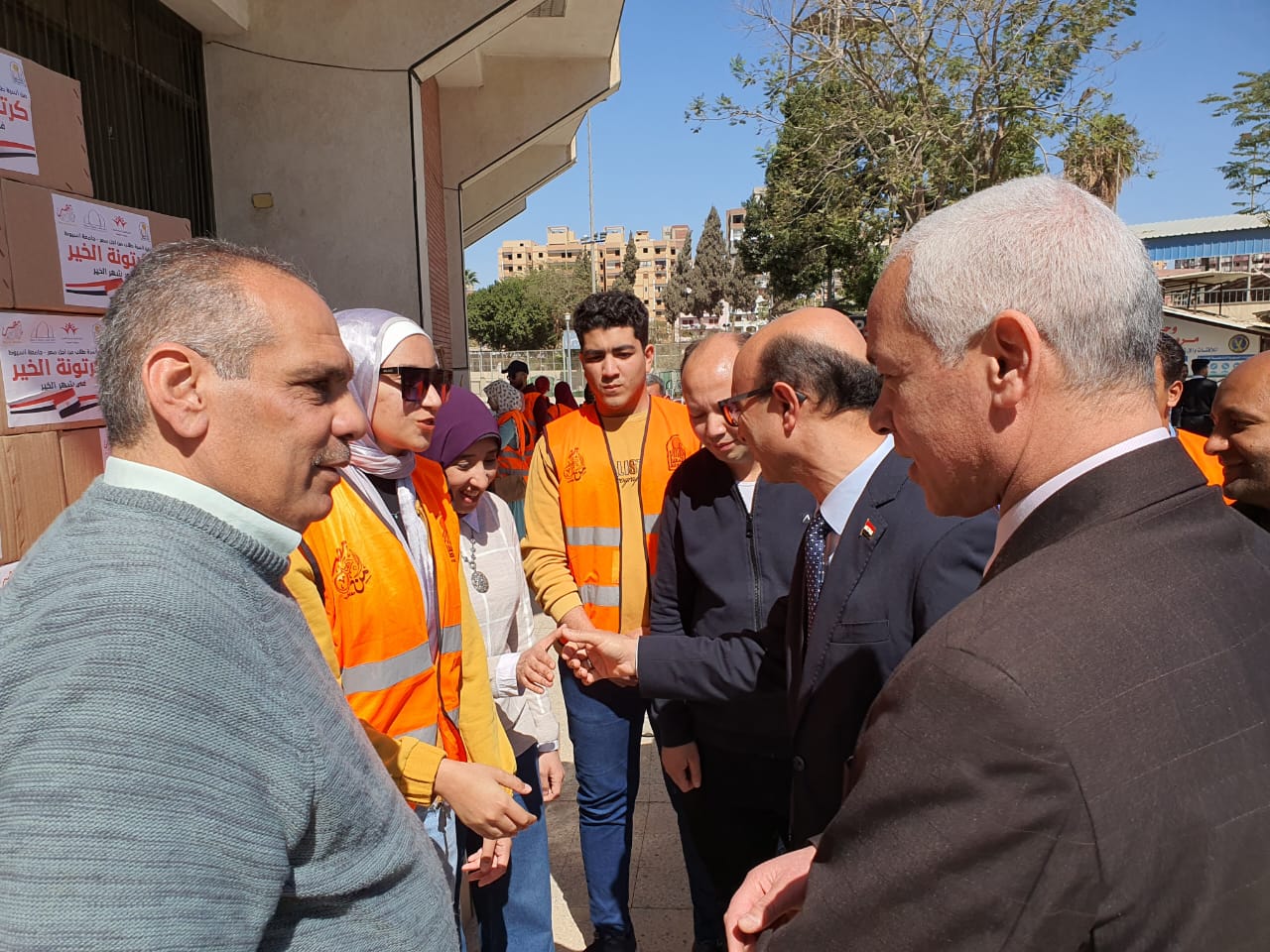رئيس جامعة أسيوط يشارك أسرة طلاب من أجل مصر تجهيزات مبادرة كرتونة الخير لتعبئة وتوزيع 1000 كرتونة غذائية