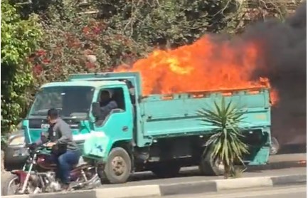 وتلقت غرفة الحماية المدنية في القاهرة بلاغا بنشوب الحريق في سيارة نقل تسير على الطريق في منطقة الزيتون، فوجه اللواء جمال ياسين مدير الحماية المدنية في القاهرة بالدفع بسيارة إطفاء لإخماد النيران.