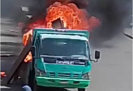 كانت تسير مشتعلة.. تفاصيل فيديو حريق سيارة نقل في القاهرة والسيطرة عليه | فيديو