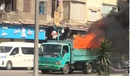 شهدت منطقة الزيتون بالقاهرة أول أمس واقعة غريبة من نوعها، عندما اشتغلت النيران في صندوق سيارة نقل وظل السائق يسير بها رغم تصاعد ألسنة النيران من السيارة.
