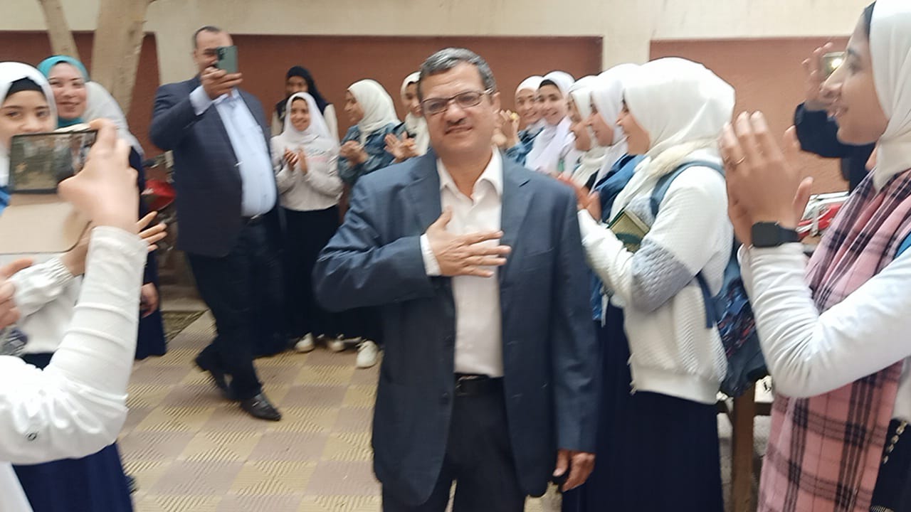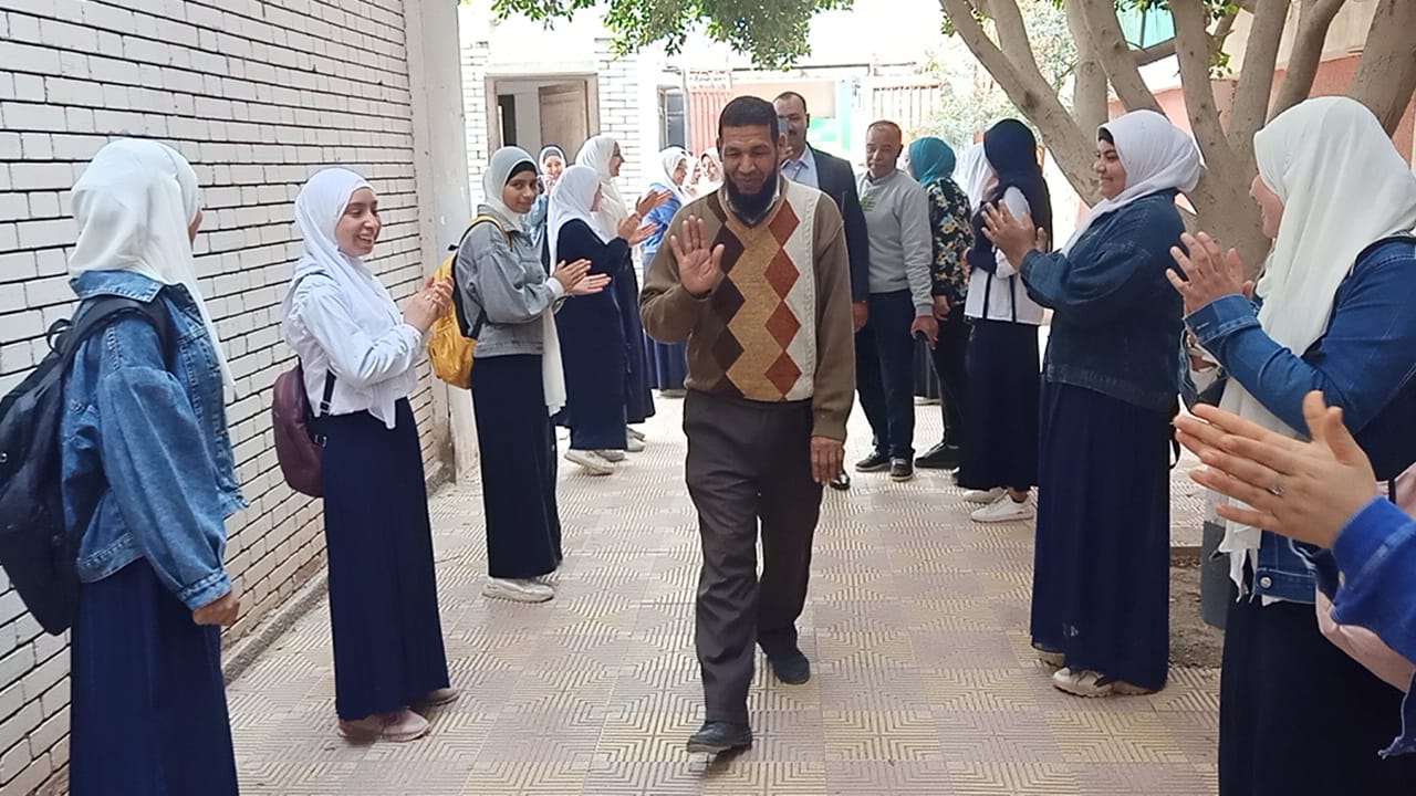 واصطف الطالبات والمعلمون بالممر، في مشهد مبهج، اعترافا منهم بفضلهما خلال سنوات عمرهما بين الطلاب فى حضور محمود هنداوي مدير المدرسة.