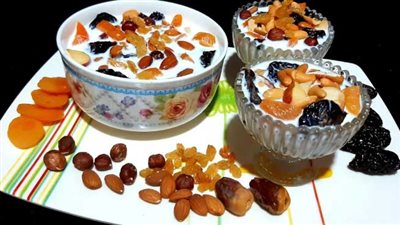 - كما يتم نقع الفاكهة المجففة مع المكسرات