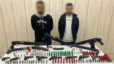 من ناحية أخرى تمكنت الأجهزة الأمنية بوزارة الداخلية من ضبط شخصين لهما معلومات جنائية، حال تواجدهما بدائرة قسم شرطة المعصرة، وبحوزتهما بندقية آلية و5 بنادق خرطوش و2 فرد خرطوش و5 طبنجات صوت وعدد من الطلقات مختلفة الأعيرة وكمية من مخدر الأيس و8 قطع سلاح وكمية لمخدر الحشيش ومبلغ مالي.