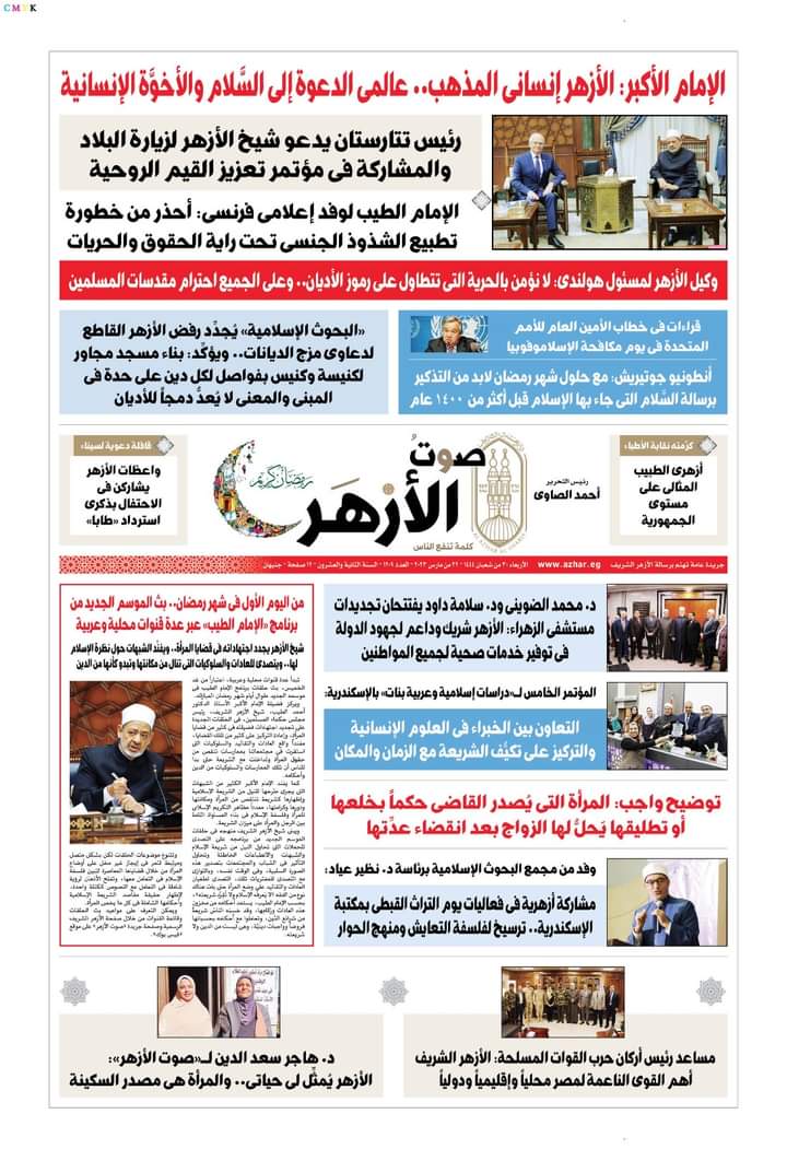 جريدة صوت الأزهر تصدر عددًا جديدًا