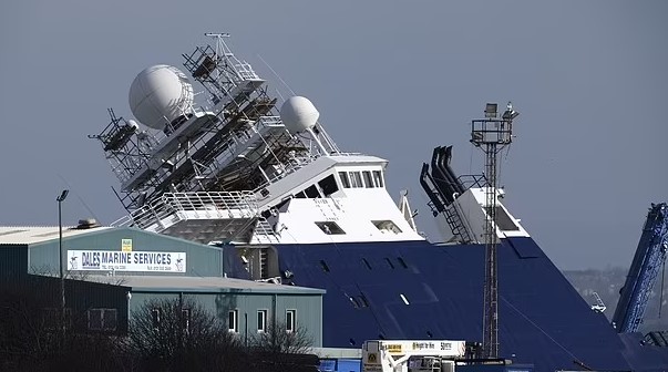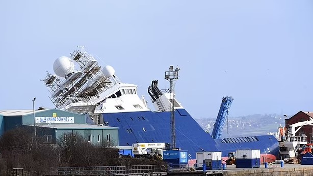 ومن جانبها، قالت شرطة أدنبر، إن سفينة خرجت من مكانها في إمبريال دوك بسبب حركة الرياح الشديدة، فيما أشارت الصحيفة البريطانية إلى أن السفينة التي يبلغ ارتفاعها 250 قدما انقلبت بزاوية 45 درجة بسبب قوة الرياح.