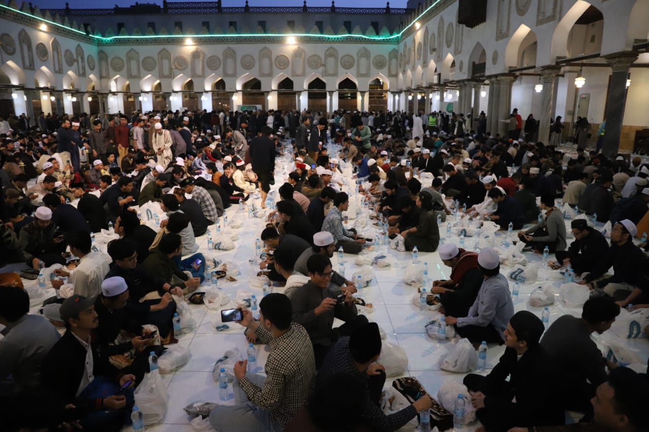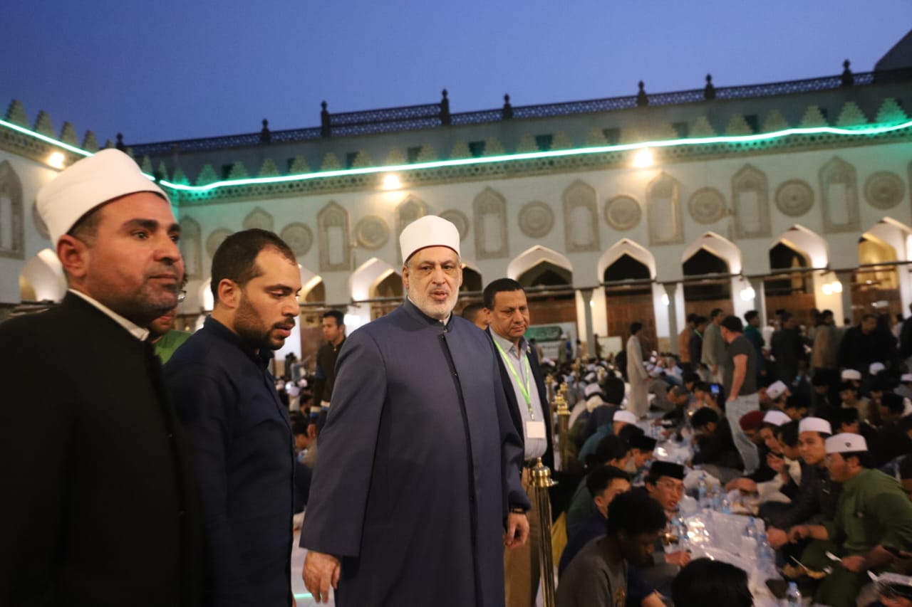 شارك الدكتور محمد الضويني، وكيل الأزهر الشريف، مع الطلاب الوافدين بالأزهر، في الإفطار الجماعي لأول يوم في رمضان بصحن الجامع الأزهر، حيث ينظم الجامع إفطارًا جماعيًّا للعام الثاني للطلاب الوافدين بواقع 4000 آلاف وجبة يوميًّا، وبإجمالي 120 ألف وجبة للشهر، وذلك في إطار الدور الإنساني والديني والوطني الذي يقوم به الأزهر في خدمة ورعاية أبنائه الوافدين ضيوف مصر.