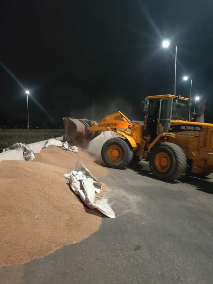 انقلاب سيارة نقل محملة بـ60 طن قمح في الدقهلية | صور