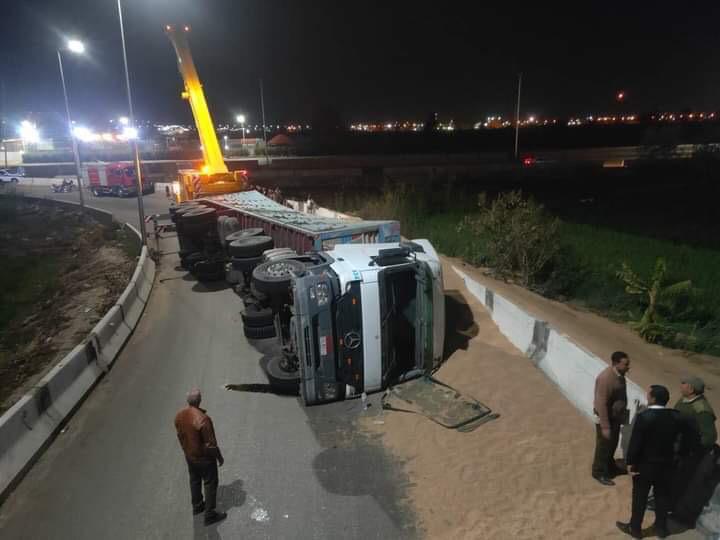انقلاب سيارة نقل محملة بـ60 طن قمح في الدقهلية
