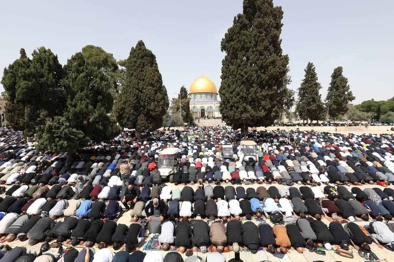 100 ألف مصل يؤدون أول صلاة جمعة من رمضان بالمسجد الأقصى المبارك | صور