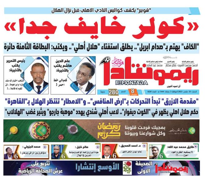 كولر خايف جدا والأهلي مدلل كاف.. عناوين مثيرة تتصدر الصحف السودانية قبل مواجهة الهلال