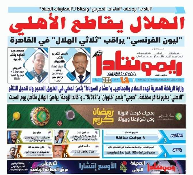تصدر هذا العنوان غلاف صحيفة لقاء كل يوم السودانية، والتي زعمت أن جماهير الأهلي تمتلك سوابق في المباريات تجعل هناك قلق من إدارة النادي الأحمر، والتي جعلت هناك مطالبات لهم بضبط النفس خلال تواجدهم في المدرجات أمام الهلال.