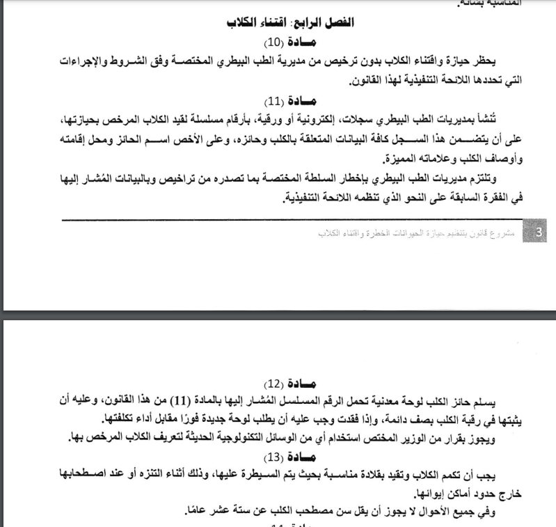 تراخيص للكلاب وحظر اقتنائها لمن دون 16 عامًا.. ننشر النص الكامل لقانون تنظيم حيازة الحيوانات الخطرة| مستند