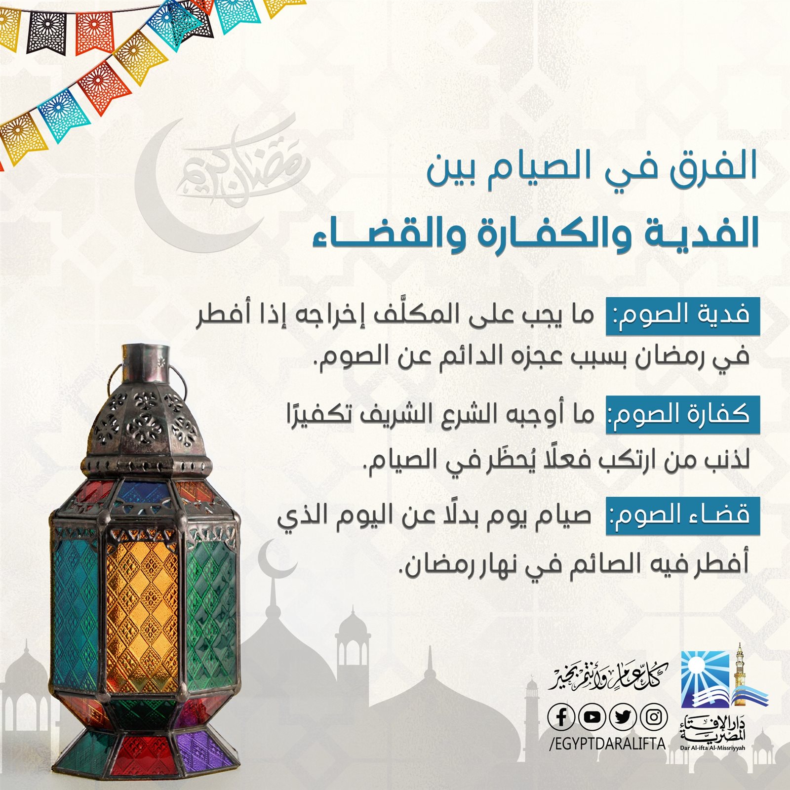 الفرق في الصيام بين الفدية والكفارة والقضاء: