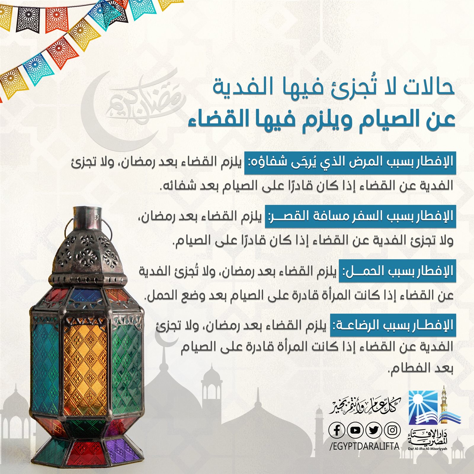 حالات لا تجزئ فيها الفدية عن الصيام ويلزم فيها القضاء: