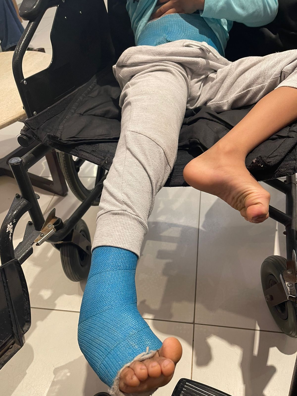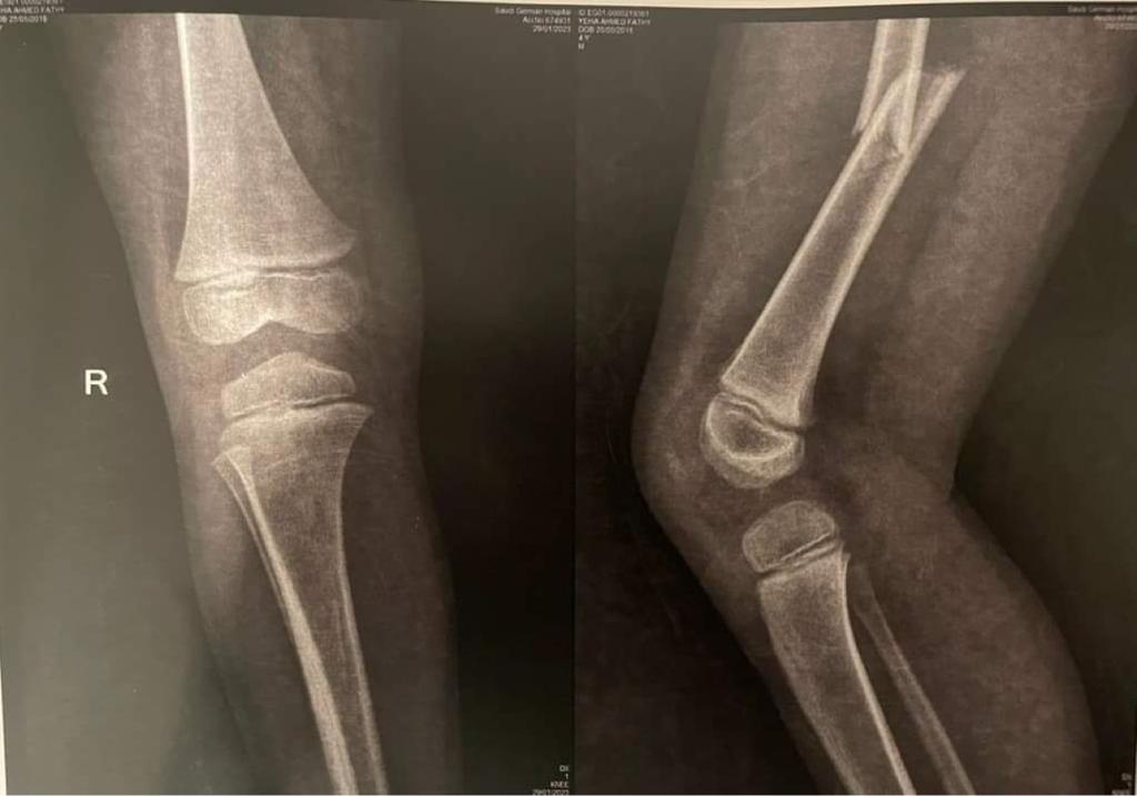 وأخبرت المستشفى والدة الطفل أنه مصاب بكسر في عظمة الفخذ، ويحتاج إلى عملية جراحية، ومن بعدها علاج طبيعي ويحتاج إلى عملية أخرى.