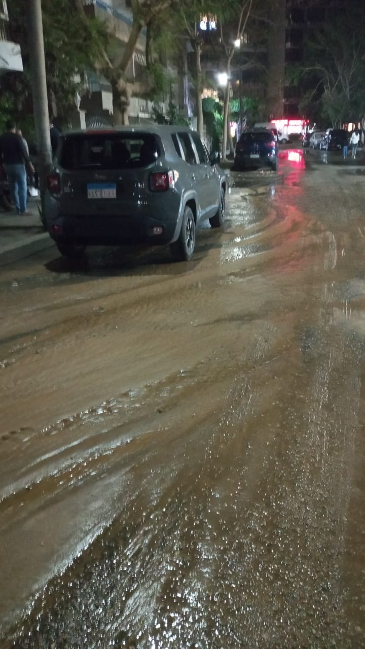 كسر ماسورة مياه خلف مستشفى فلسطين بمصر الجديدة وغرق الشوارع المجاورة
