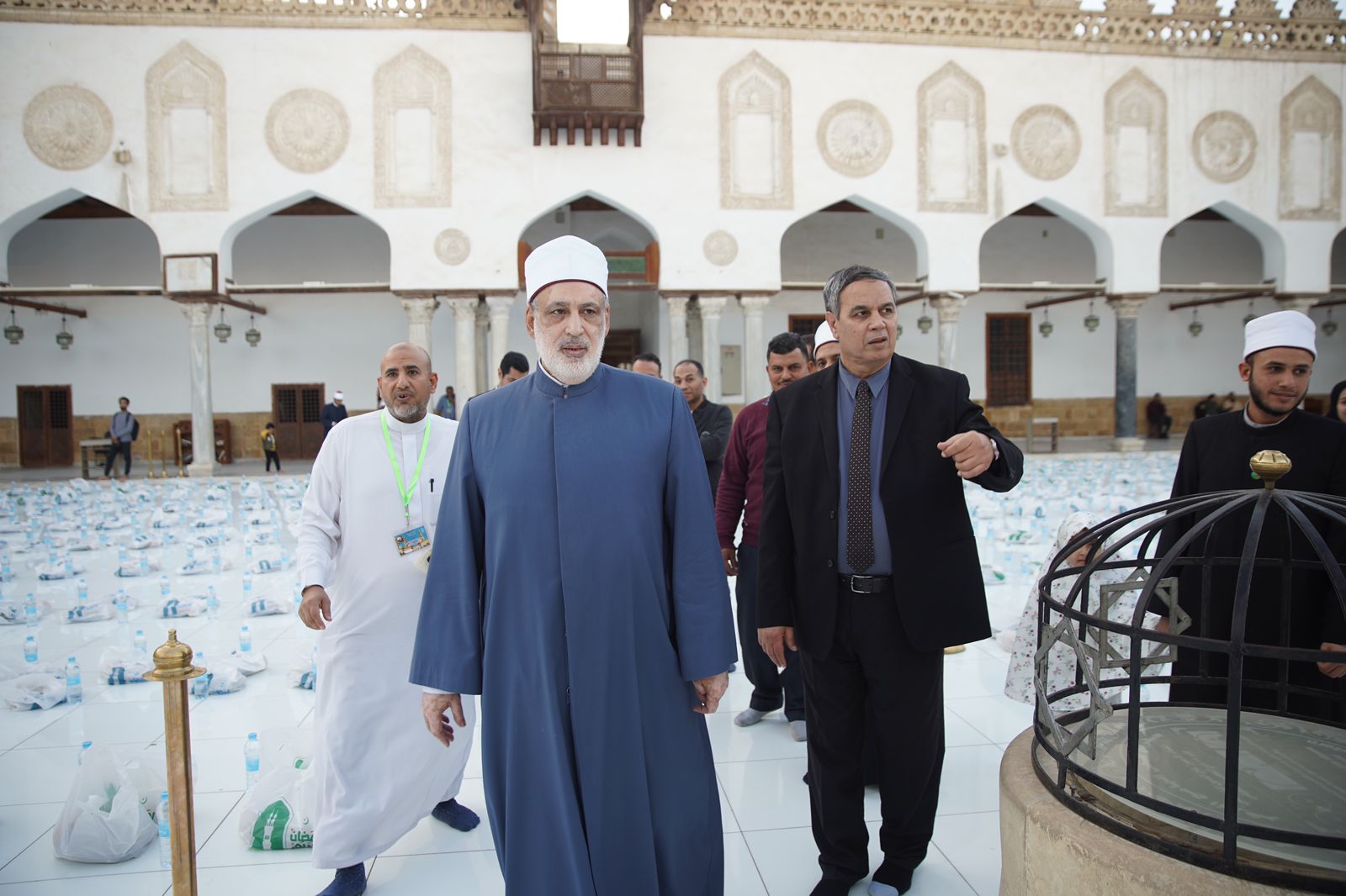 لليوم الخامس.. وكيل الأزهر يشارك الوافدين إفطارهم في صحن الجامع