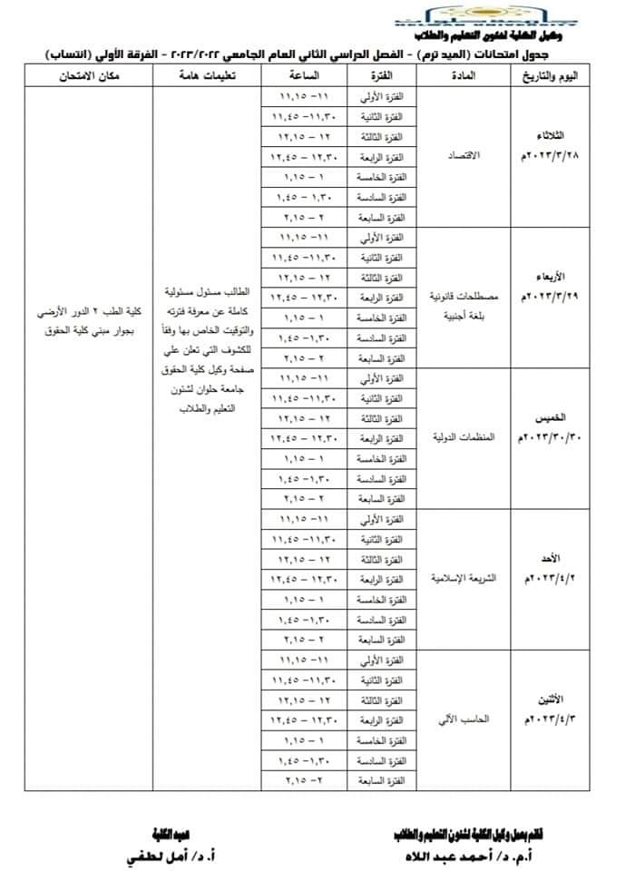 ننشر جدول امتحانات الميدتيرم للفصل الدراسي الثاني بحقوق حلوان